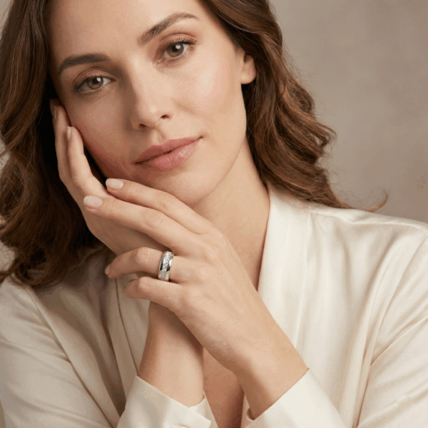 Chiếc nhẫn này được chế tác thủ công tinh xảo từ bạc sterling cao cấp, giúp giữ nguyên form dáng và vẻ đẹp theo thời gian. Phiên bản này tái hiện gần như hoàn hảo thiết kế gốc, mang đến phong cách thanh lịch và vượt thời gian. Sản phẩm phù hợp cho nhiều dịp như đám cưới, sinh nhật, gặp gỡ đối tác hay bất kỳ sự kiện nào yêu cầu trang phục trang trọng.