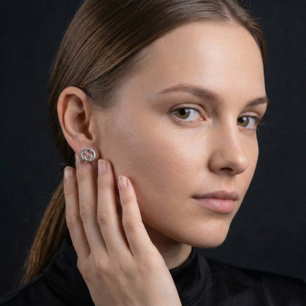 Bông tai nhỏ xinh, biểu tượng GG nhìn rất sang. Đeo lên gọn gàng, không quá phô nhưng ai nhìn cũng nhận ra là kiểu Gucci kinh điển. Hàng fake cao cấp mà nét cắt sắc như auth.
