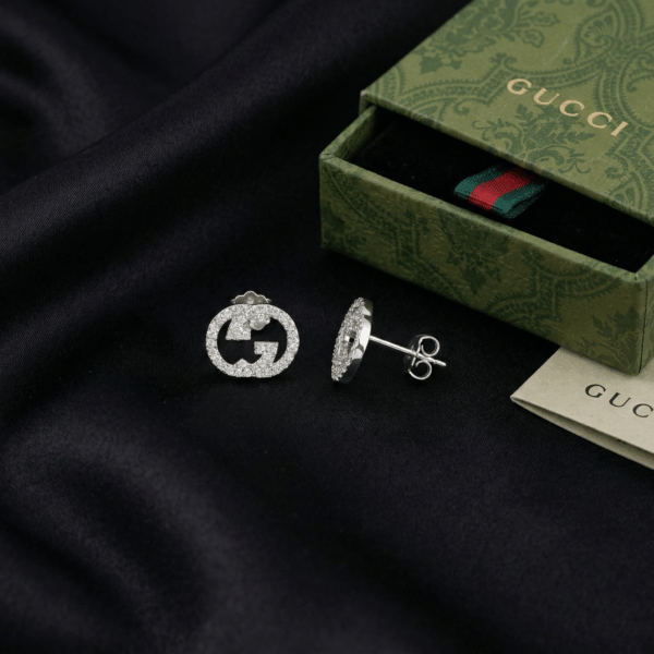 Gucci Interlocking studs kiểu dáng basic nhưng cực kỳ sang. Chất liệu tốt, đeo không bị dị ứng hay đau tai. Mình đeo hơn 1 tháng rồi vẫn như mới, quá ổn cho bản rep!