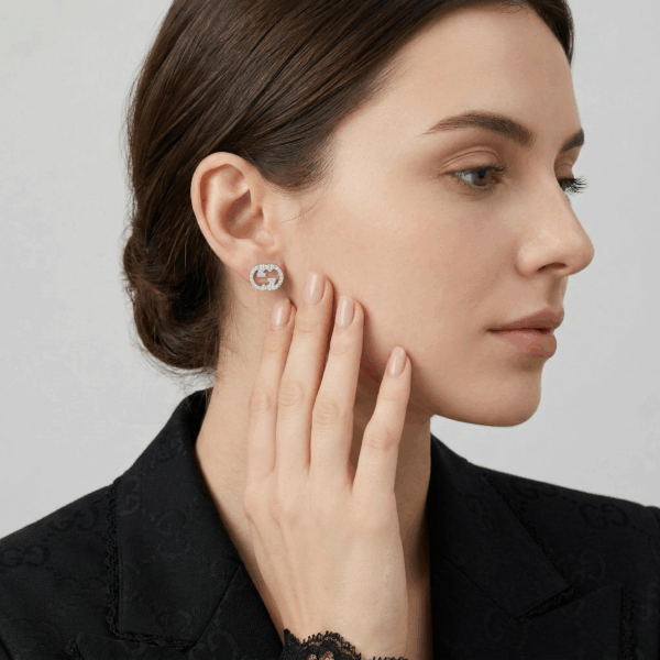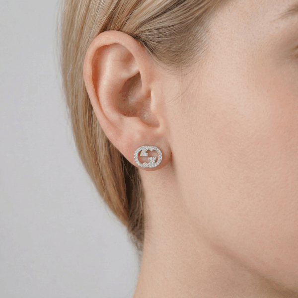 Mẫu khuyên tai này nằm trong bộ sưu tập trang sức Interlocking lấy cảm hứng từ logo hình học. Thiết kế của mẫu khuyên tai nổi bật với biểu tượng logo GG cách điệu, sau đó được đính đá cubic zirconia lấp lánh, tạo nên vẻ đẹp hiện đại và đẳng cấp.