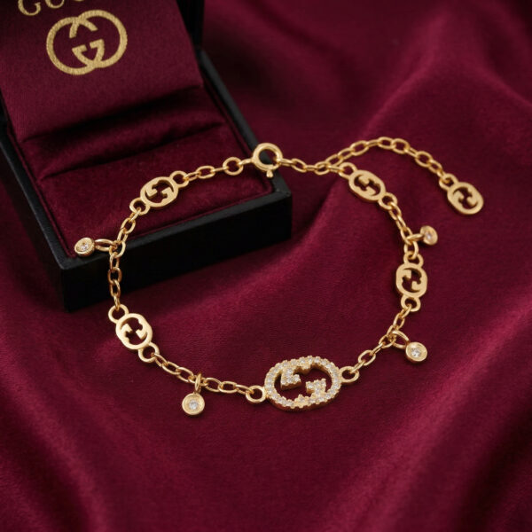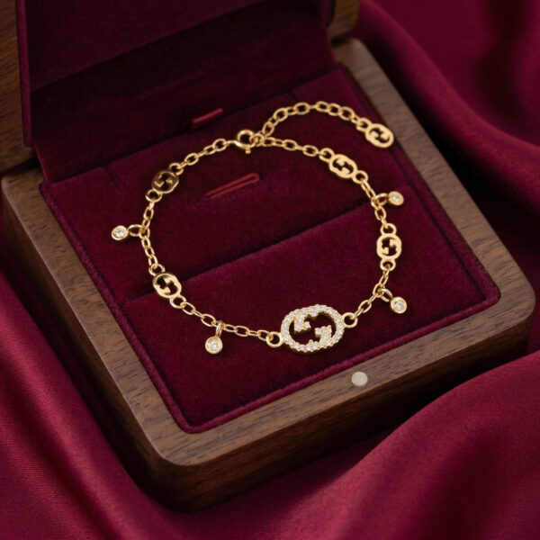 Chiếc lắc tay bạc 925 cao cấp đến từ thương hiệu Gucci là sự kết hợp hoàn hảo giữa phong cách thời thượng và sự tinh tế trong từng chi tiết. Với thiết kế biểu tượng GG lồng vào nhau đính đá lấp lánh ở trung tâm, sản phẩm tạo nên điểm nhấn sang trọng nhưng vẫn giữ được nét thanh lịch, nhẹ nhàng.