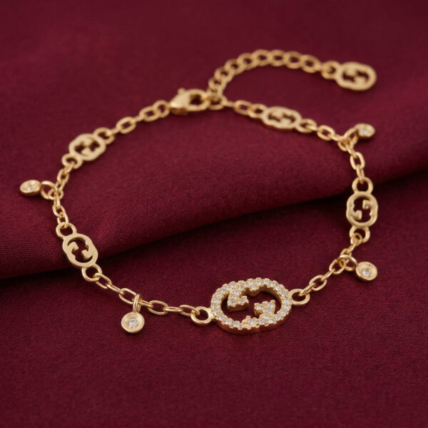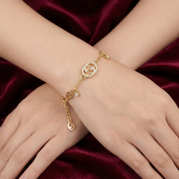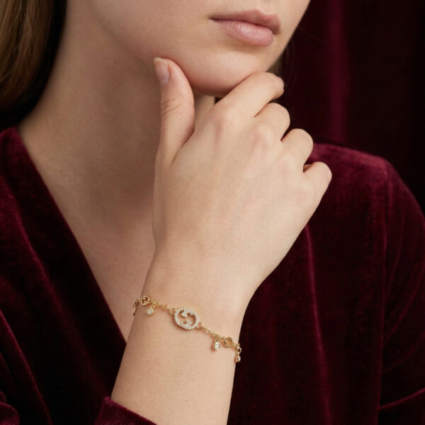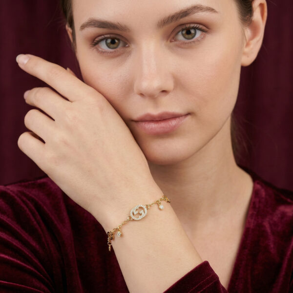 Chất liệu bạc 925 không chỉ giúp sản phẩm luôn sáng bóng, bền đẹp theo thời gian mà còn an toàn tuyệt đối cho da, kể cả làn da nhạy cảm. Chỉ khi bạn đeo các chất liệu kim loại rẻ tiền thì sẽ khiến tay bạn dễ bị kích ứng, ngứa hoặc mẩn đỏ. Dọc thân lắc là những họa tiết GG tròn xen kẽ cùng đá đính rơi nhẹ, tạo hiệu ứng ánh sáng tinh tế khi đeo.