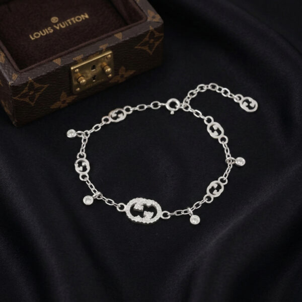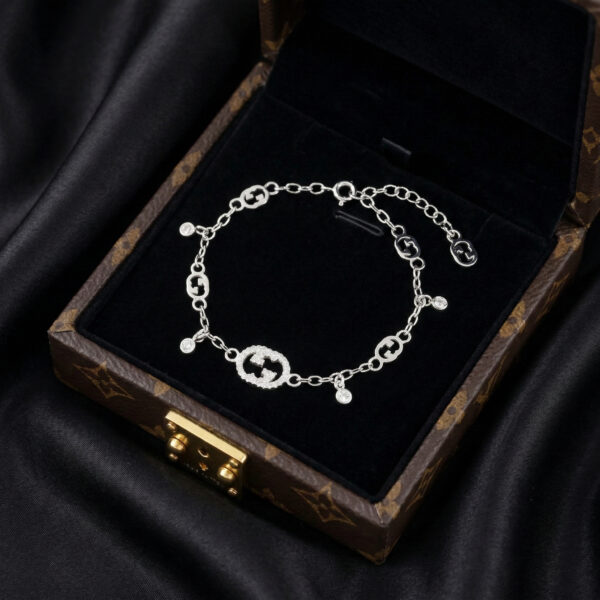 Chiếc lắc tay bạc 925 cao cấp đến từ thương hiệu Gucci là sự kết hợp hoàn hảo giữa phong cách thời thượng và sự tinh tế trong từng chi tiết. Với thiết kế biểu tượng GG lồng vào nhau đính đá lấp lánh ở trung tâm, sản phẩm tạo nên điểm nhấn sang trọng nhưng vẫn giữ được nét thanh lịch, nhẹ nhàng.