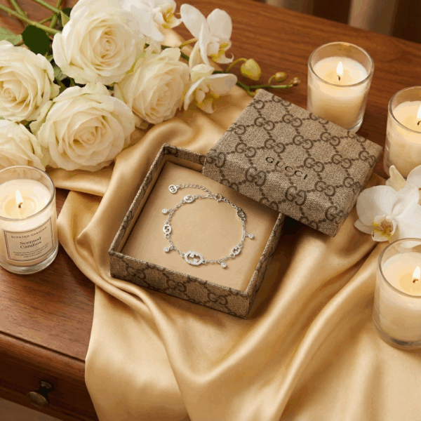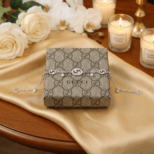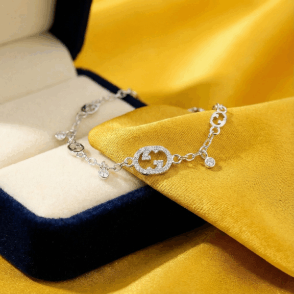 Chiếc lắc tay bạc 925 cao cấp đến từ thương hiệu Gucci là sự kết hợp hoàn hảo giữa phong cách thời thượng và sự tinh tế trong từng chi tiết. Với thiết kế biểu tượng GG lồng vào nhau đính đá lấp lánh ở trung tâm, sản phẩm tạo nên điểm nhấn sang trọng nhưng vẫn giữ được nét thanh lịch, nhẹ nhàng….