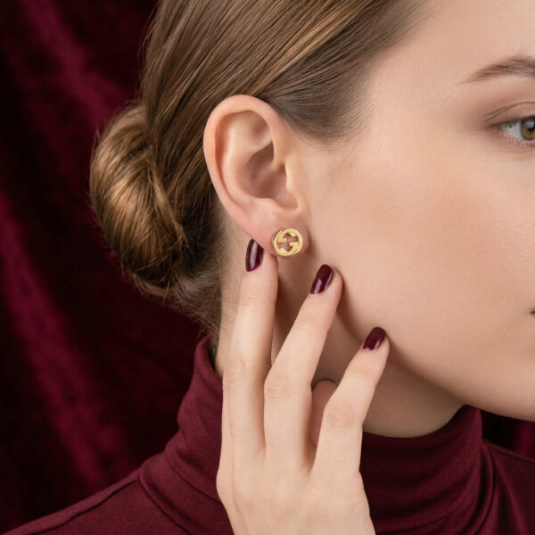 Mẫu khuyên tai này nằm trong bộ sưu tập trang sức Interlocking lấy cảm hứng từ logo hình học. Thiết kế của mẫu khuyên tai nổi bật với biểu tượng logo GG cách điệu, tạo nên vẻ đẹp hiện đại và đẳng cấp.