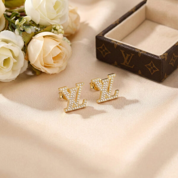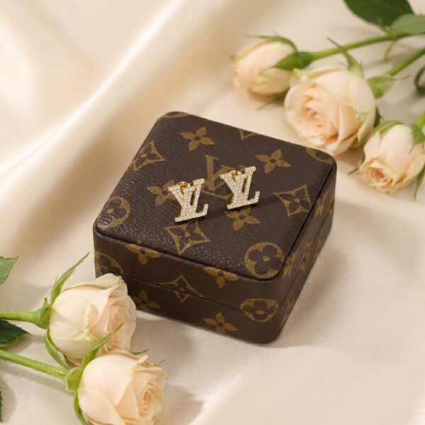 Khuyên tai L.V đính đá full chữ – Sang trọng, nổi bật, đậm chất thời trang