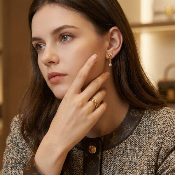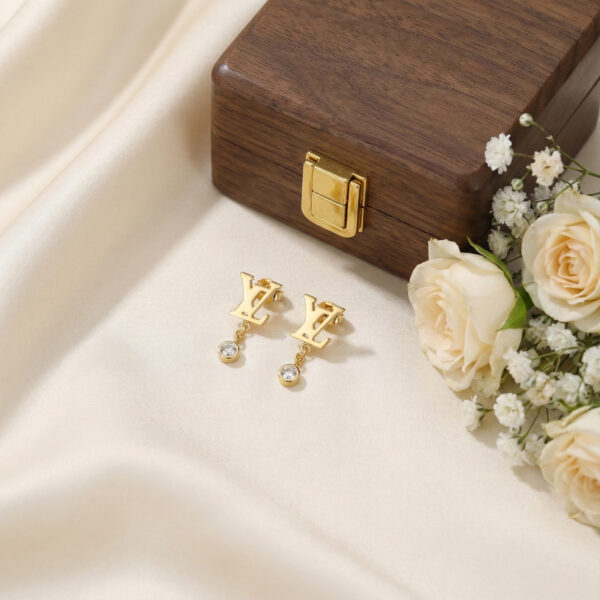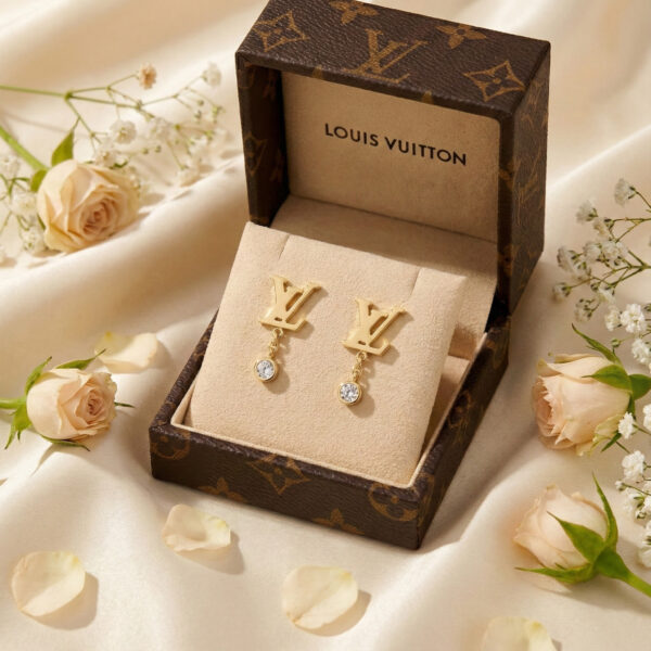 Khuyên tai dáng dài L.V đính đá Cubic Zirconia – Tinh tế & Thanh lịch. Một thiết kế thanh lịch và đầy cuốn hút từ cảm hứng thời trang hàng hiệu, mẫu khuyên tai này nổi bật với biểu tượng L.V cách điệu sắc nét, kết hợp với viên đá Cubic Zirconia lấp lánh được treo khéo léo tạo chuyển động nhẹ nhàng theo từng bước đi….
