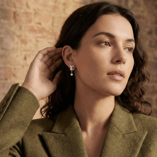 Một thiết kế thanh lịch và đầy cuốn hút từ cảm hứng thời trang hàng hiệu, mẫu khuyên tai này nổi bật với biểu tượng L.V cách điệu sắc nét, kết hợp với viên đá Cubic Zirconia lấp lánh được treo khéo léo tạo chuyển động nhẹ nhàng theo từng bước đi.