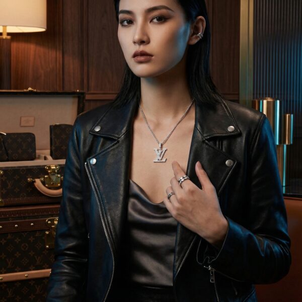 Chiếc vòng này thật tuyệt — sáng bóng, sang trọng và hoàn toàn phù hợp để chụp ảnh. Trông giống hàng hiệu, cảm giác đắt tiền, nhưng tài khoản ngân hàng của tôi vẫn vui 🙂 Mặt dây chuyền LV to và táo bạo nhưng không hề sến súa.