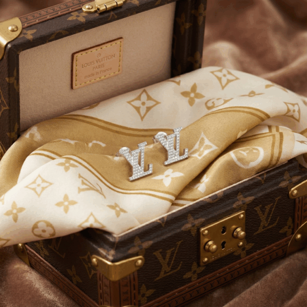 Đôi khuyên tai này mang biểu tượng L.V trứ danh – biểu tượng của đẳng cấp và phong cách. Toàn bộ bề mặt được đính đá lấp lánh, phủ kín từng chi tiết chữ cái, tạo hiệu ứng bắt sáng hoàn hảo khi bạn di chuyển. Thiết kế dáng stud (đuôi đinh) đơn giản nhưng tinh tế, phù hợp để đeo hàng ngày hoặc tạo điểm nhấn cho những outfit cá tính, thanh lịch. Đây là lựa chọn lý tưởng cho những ai yêu thích phong cách luxury basic – tối giản mà vẫn thời thượng.