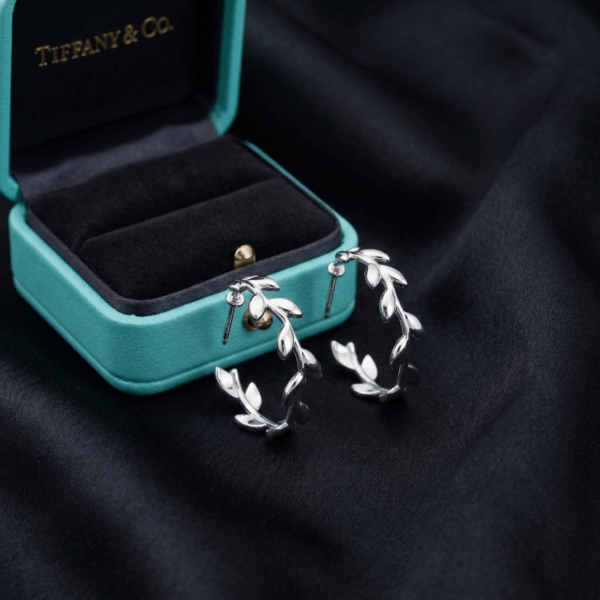 Mẫu khuyên tai Tiffany Olive Leaf Hoop được thiết kế lấy cảm hứng từ thiên nhiên với hình dáng những chiếc lá nhỏ mềm mại, uốn lượn tinh tế, tạo thành một vòng cung thanh thoát ôm sát tai. Một mẫu khuyên tai rất đẹp của thương hiệu Tiffany & Co.