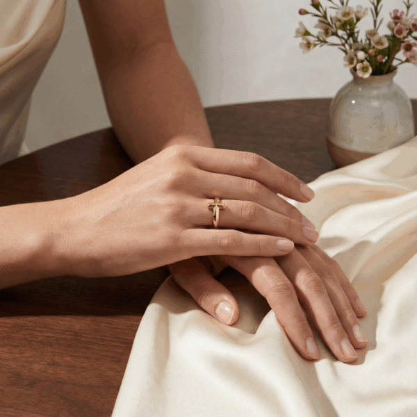 Super comfortable to wear — not bulky or sharp like some rings. The T shape sits flat and gives such a chic look.