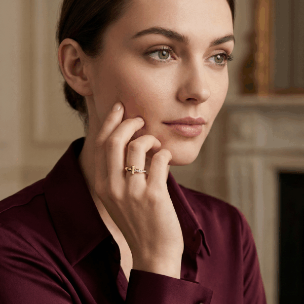 Nhẫn Tiffany T Ring là biểu tượng của sự thanh lịch và hiện đại. Điểm nhấn là chi tiết chữ “T” độc đáo được chế tác sắc nét, kết hợp cùng hàng đá cubic zirconia lấp lánh được đính tỉ mỉ trên thân nhẫn, mang đến vẻ sang trọng và quý phái.