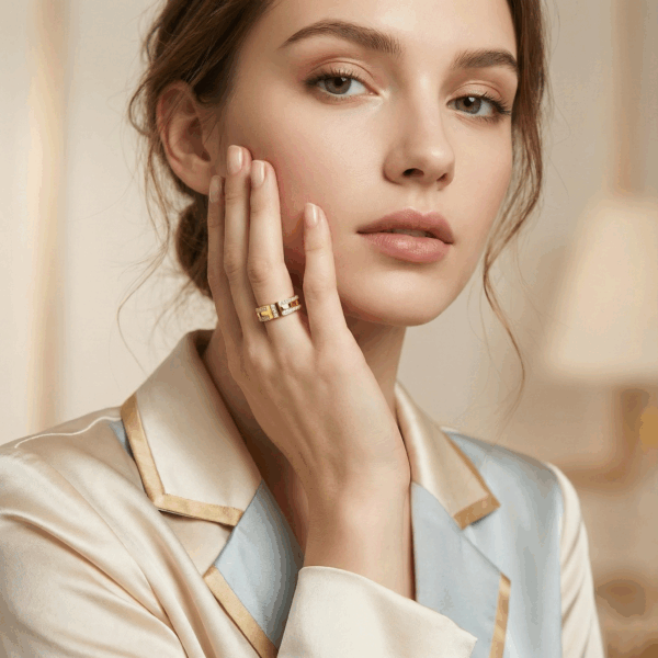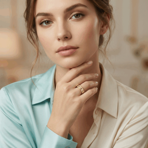 Vành nhẫn rộng với hai hàng đá tinh xảo bao quanh, mang lại cảm giác nổi bật nhưng vẫn hài hòa, phù hợp cho cả phong cách hàng ngày lẫn các dịp đặc biệt. Sản phẩm được chế tác giống hãng đến 95%, giúp bạn sở hữu vẻ đẹp đẳng cấp với mức giá cực kỳ hợp lý – một lựa chọn thông minh để mua hàng “chuẩn hãng” với chi phí tiết kiệm!