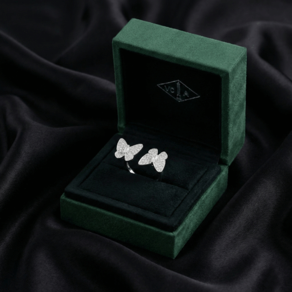 Chiếc nhẫn này đẹp không tưởng! Hai cánh bướm lơ lửng như đang bay trên tay, nhìn cực kỳ tinh tế và sang trọng. Giao hàng nhanh, hộp gói xịn như ở store chính hãng.
